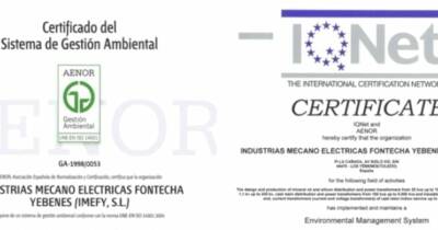 IMEFY renueva su Certificado de Gestión Ambiental de ISO 14001